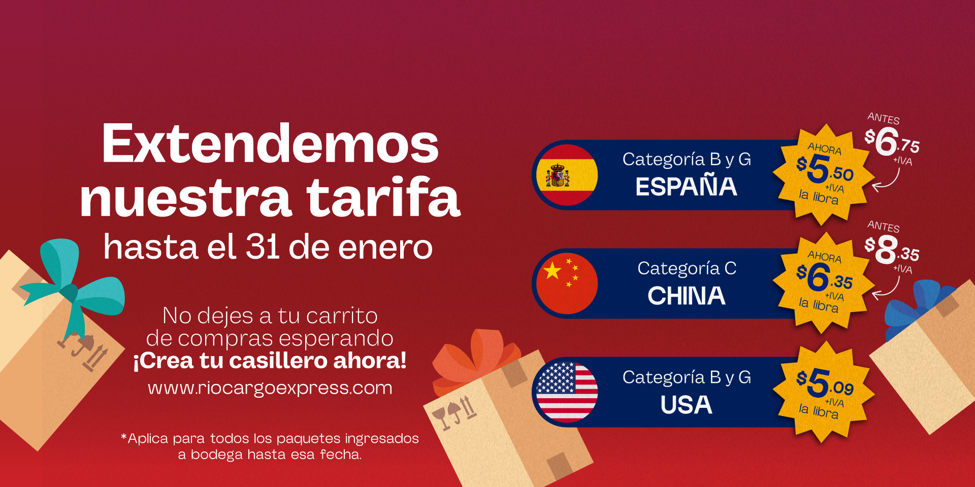 * Para cotizaciones de artículos individuales mayores a $400,00 y/o 4kg por favor enviar un correo a cotizar@riocargoexpress.com